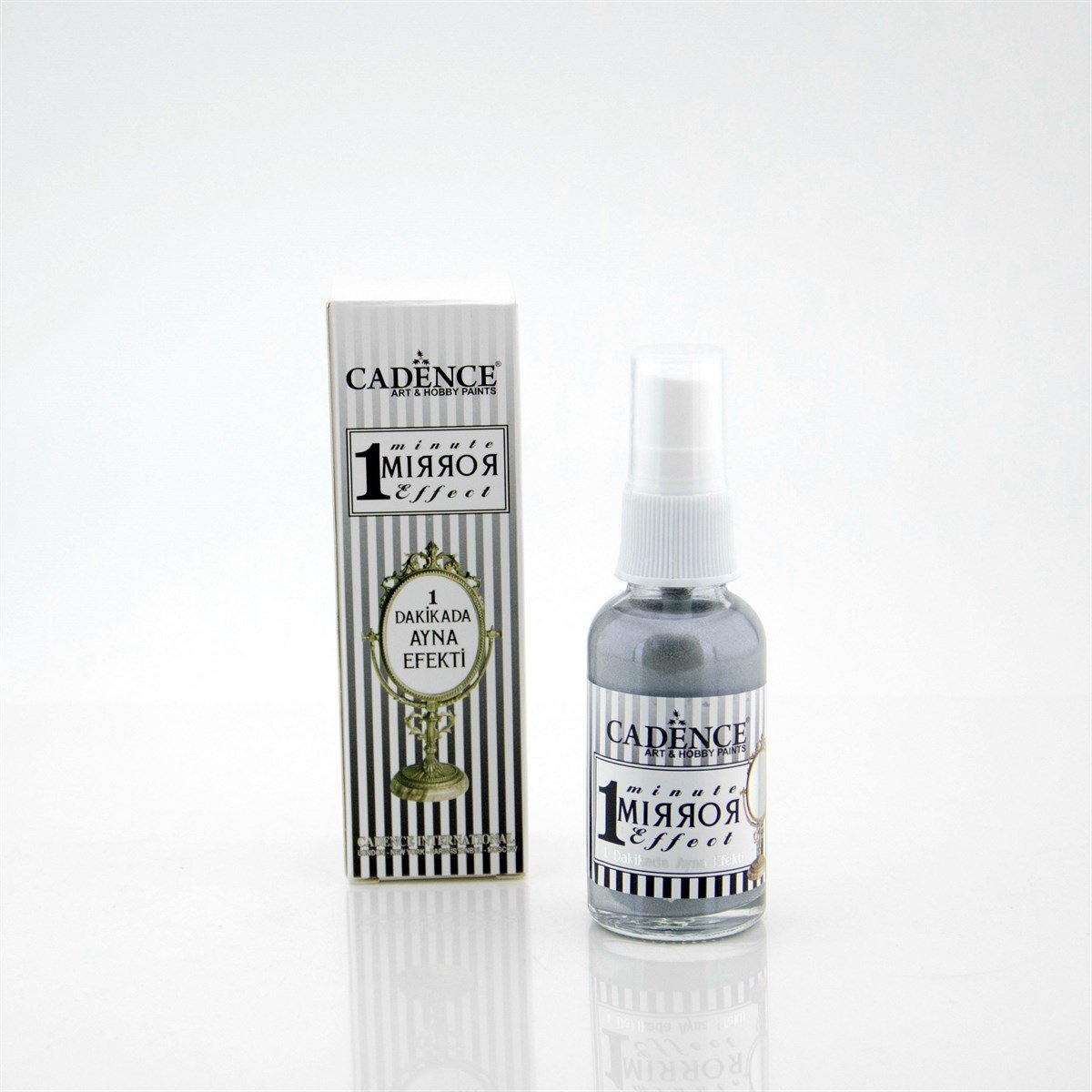 It is a unique paint that creates a reverse mirror effect on glass objects in just 1 minute. Great for decorative glass objects. The glass surfaces on which it will be applied must be clean. It is applied in a thin layer. It is a solvent-based, flammable and quick-drying product.