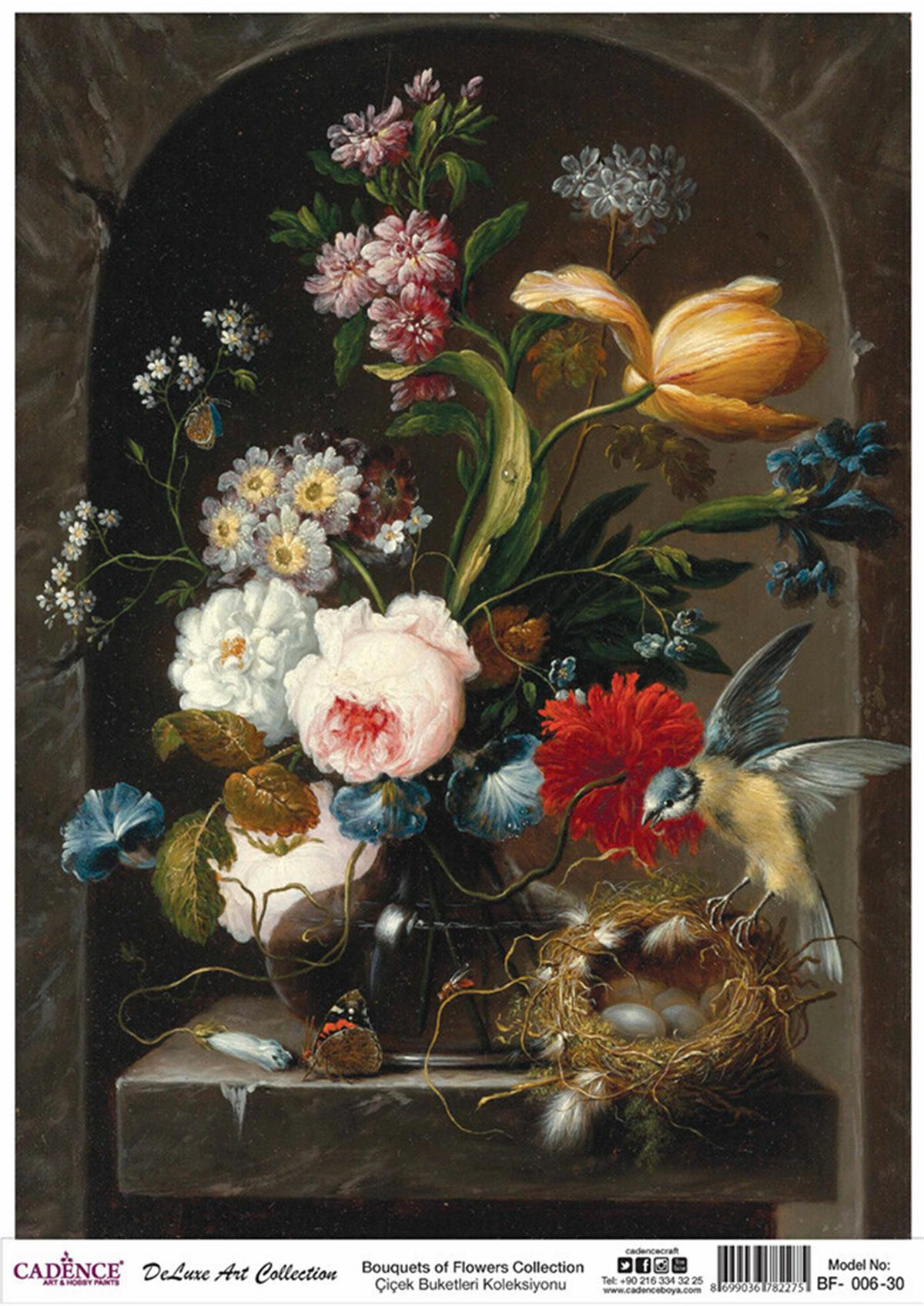 Rice paper decoupages in various sizes are printed on thin paper made from paddy straw. It is an easy-to-use, thin and resistant decoration material that can be used with Cadence Decoupage Plus on all kinds of surfaces for decoupage works. Thanks to the advantage of thousands of models and various sizes, you can take your works to a different dimension by choosing the pattern and size that best suits your works.