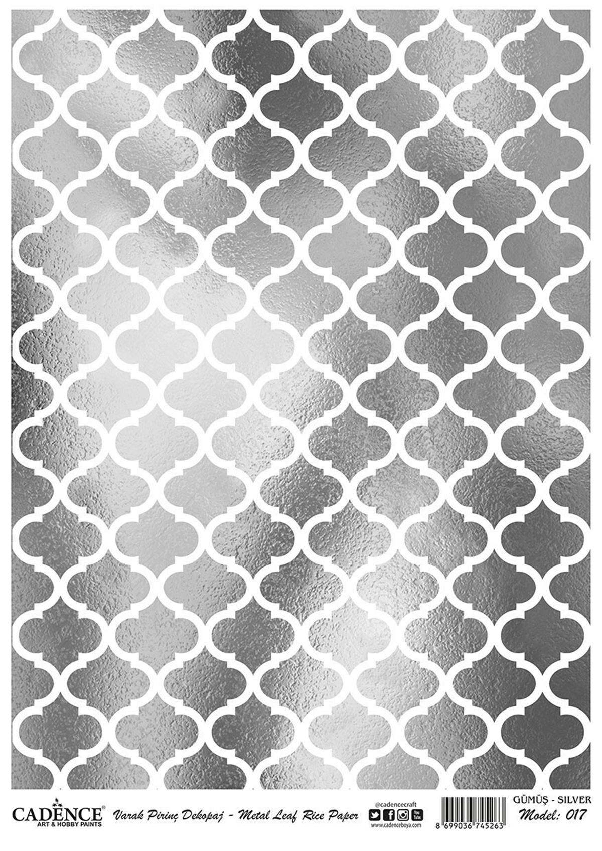 -Patterned Foil Brass; It is our brass decoupage series, where beautiful patterns meet with gold and silver foils, and will make the area you apply even more eye-catching. It measures 30x41.