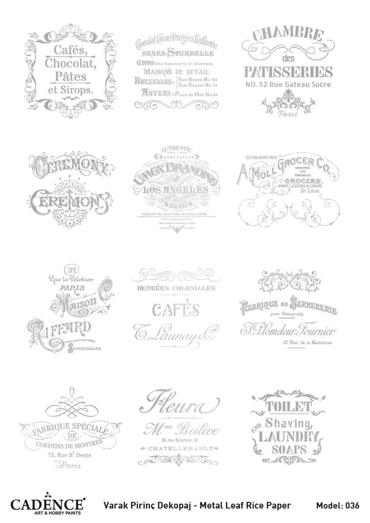 Rice paper decoupages in various sizes are printed on thin paper made from paddy straw. It is an easy-to-use, thin and resistant decoration material that can be used with Cadence Decoupage Plus on all kinds of surfaces for decoupage works. Thanks to the advantage of thousands of models and various sizes, you can take your works to a different dimension by choosing the pattern and size that best suits your works.