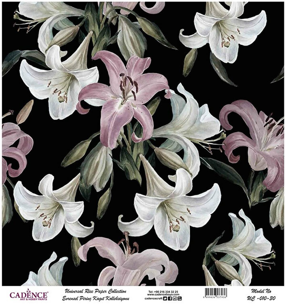 Rice paper decoupages in various sizes are printed on thin paper made from paddy straw. It is an easy-to-use, thin and resistant decoration material that can be used with Cadence Decoupage Plus on all kinds of surfaces for decoupage works. Thanks to the advantage of thousands of models and various sizes, you can take your works to a different dimension by choosing the pattern and size that best suits your works.