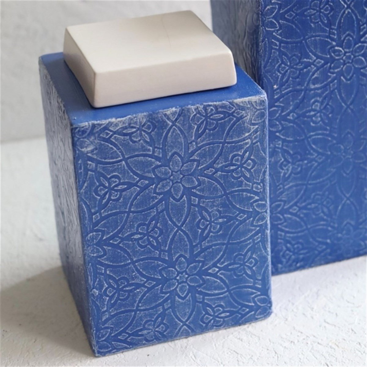 Dea'rt Istanbul Our blue and white square cube objects designed by Derya Kurdoğlu will add elegance to your decoration with their special design and bleu blanc style. .