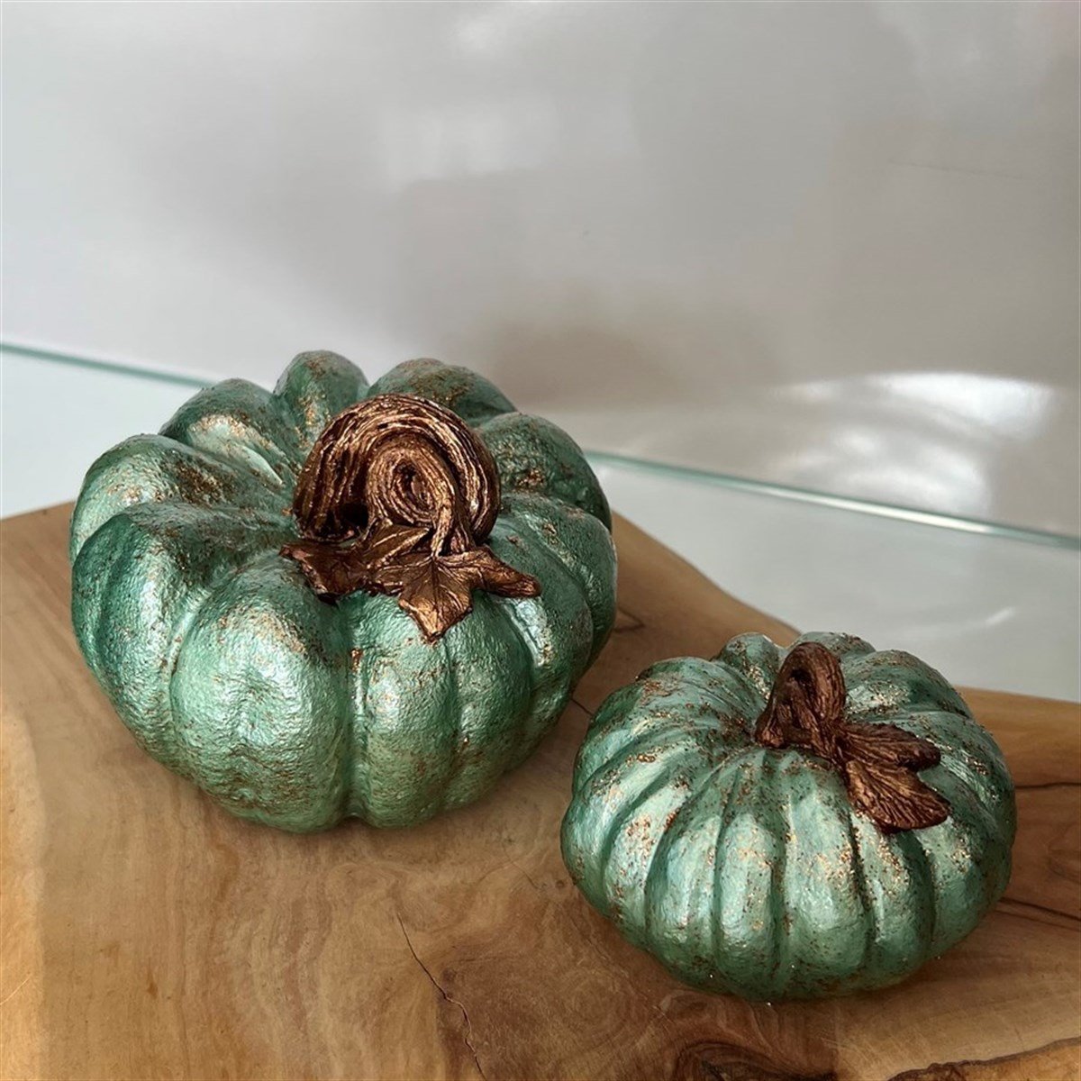 2 piece set consists of 1 large size pumpkin and 1 small size pumpkin.
