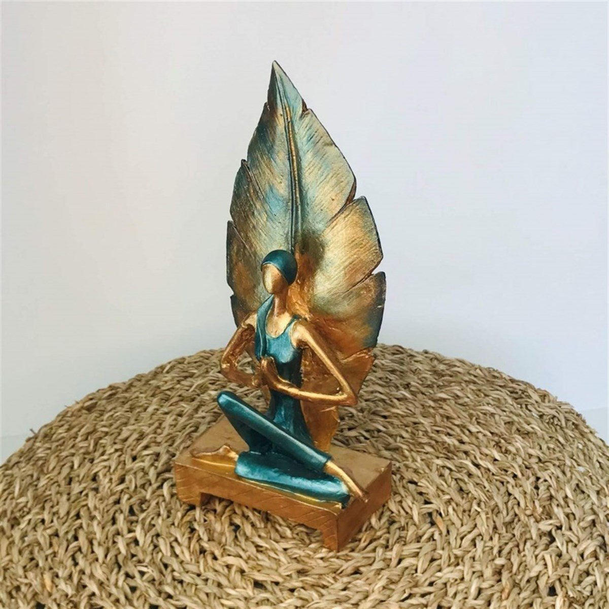 With the harmony of green, the color of nature, and gold, the color of abundance, in yoga philosophy, our yoga girls figurine will accompany you as a detail of peace in your living spaces.