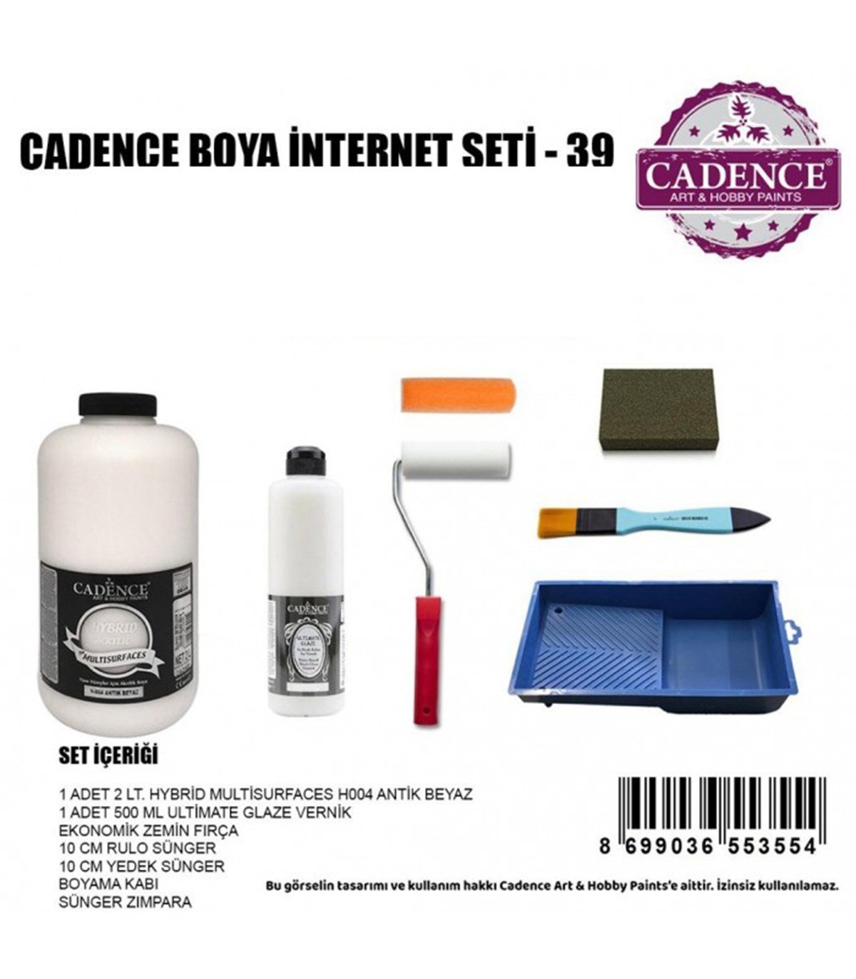 Набор красок Cadence 39; 2 литра H004-Antique White Hybrid Multisurface краска, 500 мл Ultimate Glaze Thick Glaze Varnish, губчатый валик, запасная насадка с бархатным покрытием, губчатая наждачная бумага, экономичная щетка для пола и поддон для малярного валика. С помощью этого набора можно легко покрасить 4 двери или спальный гарнитур стандартного размера, столовую, гостиную или средний кухонный гарнитур. Краски достаточно примерно на 16 квадратных метров площади.