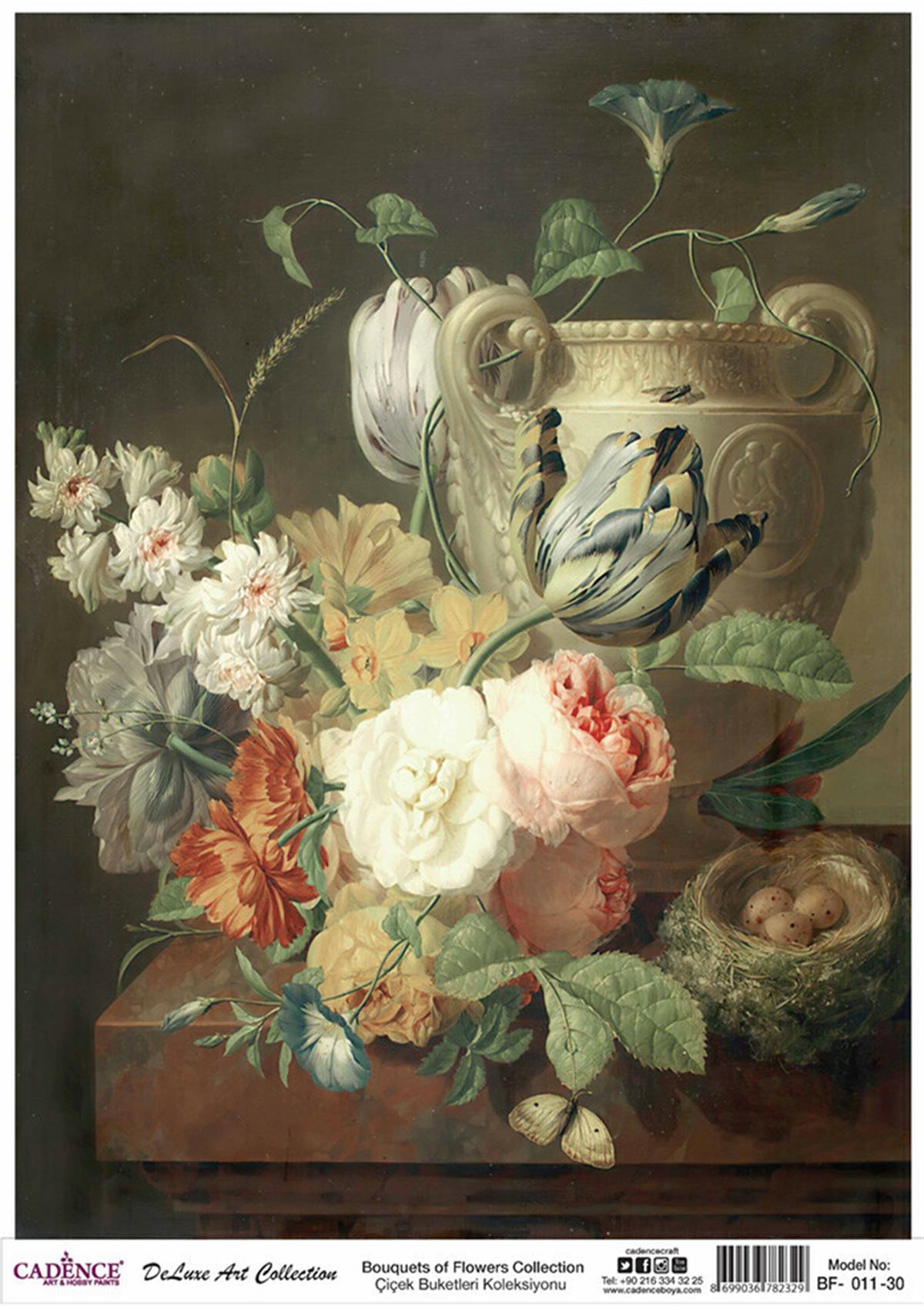Декупажи из рисовой бумаги разных размеров печатаются на тонкой бумаге из рисовой соломки. Это простой в использовании, тонкий и прочный декоративный материал, который можно использовать с Cadence Decoupage Plus на всех видах поверхностей для декупажа. Благодаря тысячам моделей и различным размерам вы можете перенести свои работы в другое измерение, выбрав узор и размер, которые лучше всего подходят вашим работам.