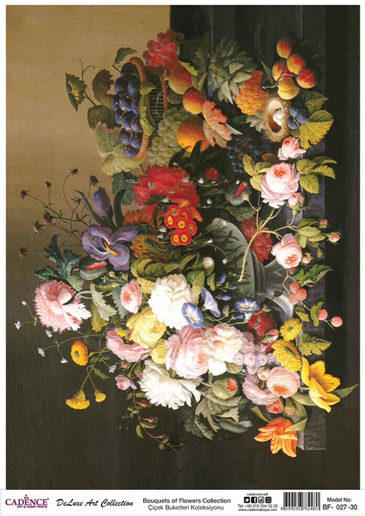 Декупажи из рисовой бумаги разных размеров печатаются на тонкой бумаге из рисовой соломки. Это простой в использовании, тонкий и прочный декоративный материал, который можно использовать с Cadence Decoupage Plus на всех видах поверхностей для декупажа. Благодаря тысячам моделей и различным размерам вы можете перенести свои работы в другое измерение, выбрав узор и размер, которые лучше всего подходят вашим работам.