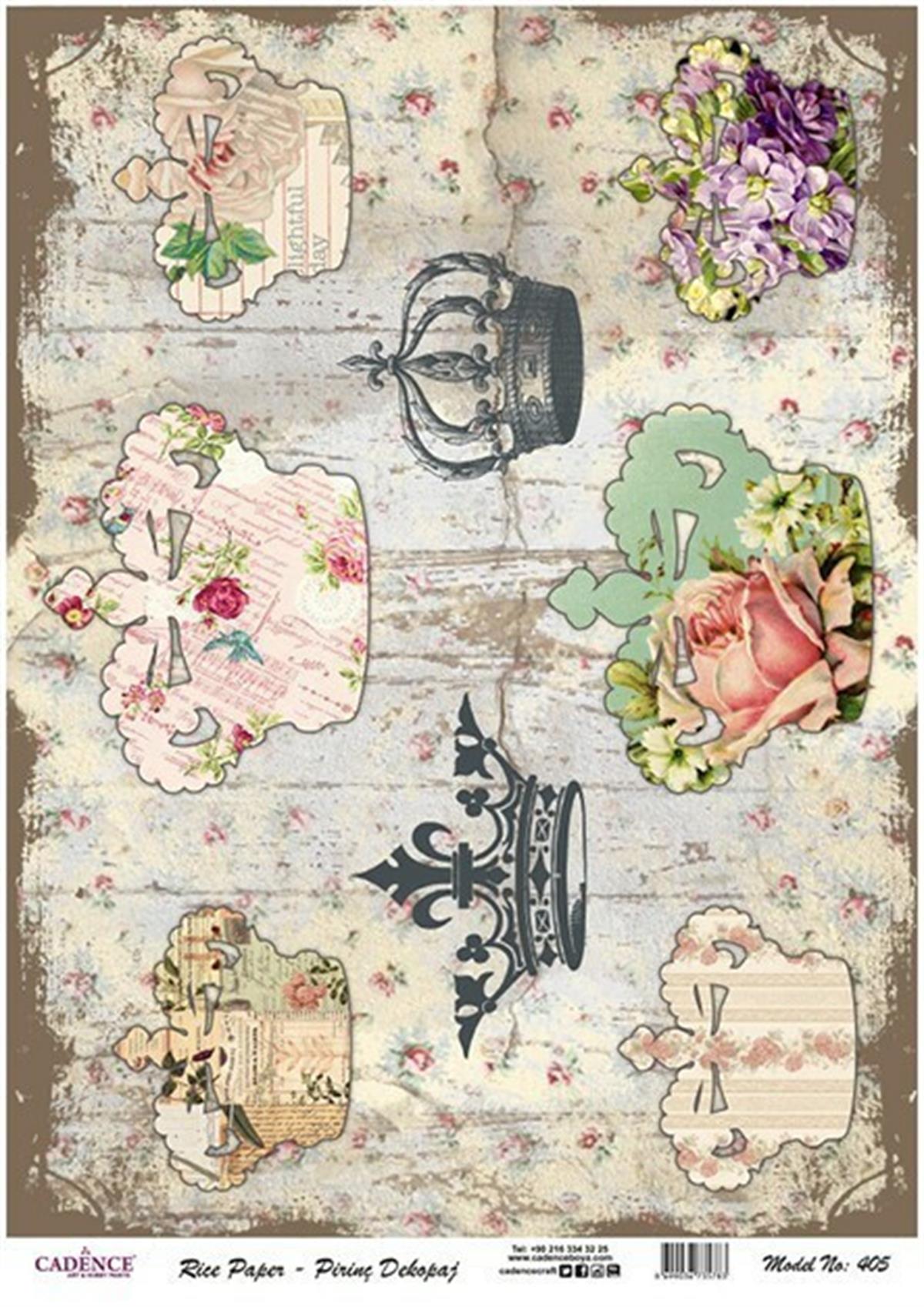 Декупажи из рисовой бумаги разных размеров печатаются на тонкой бумаге из рисовой соломки. Это простой в использовании, тонкий и прочный декоративный материал, который можно использовать с Cadence Decoupage Plus на всех видах поверхностей для декупажа. Благодаря тысячам моделей и различным размерам вы можете перенести свои работы в другое измерение, выбрав узор и размер, которые лучше всего подходят вашим работам.